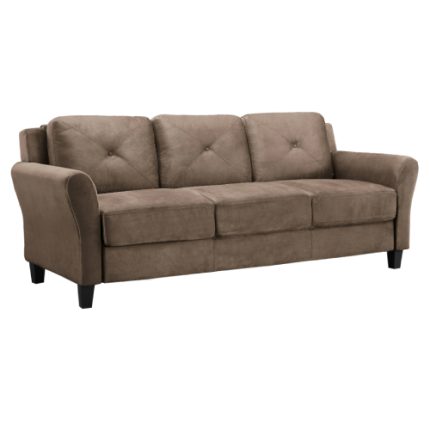 Traditional Rolled Arm Sofa in Brown Fabric