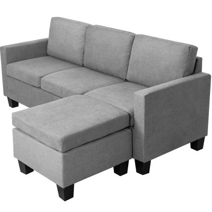 Gray Linen L-Shape Sectional Couch with Ottoman for Small to Medium Spaces